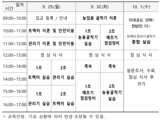 -교육장소 : 미래농업교육원 농업기계 교육장