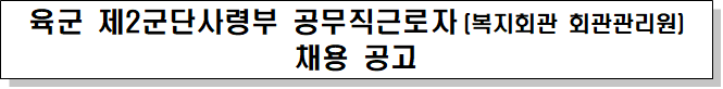 [육군 제2군단사령부]공무직근로자(복지회관 회관관리원) 채용