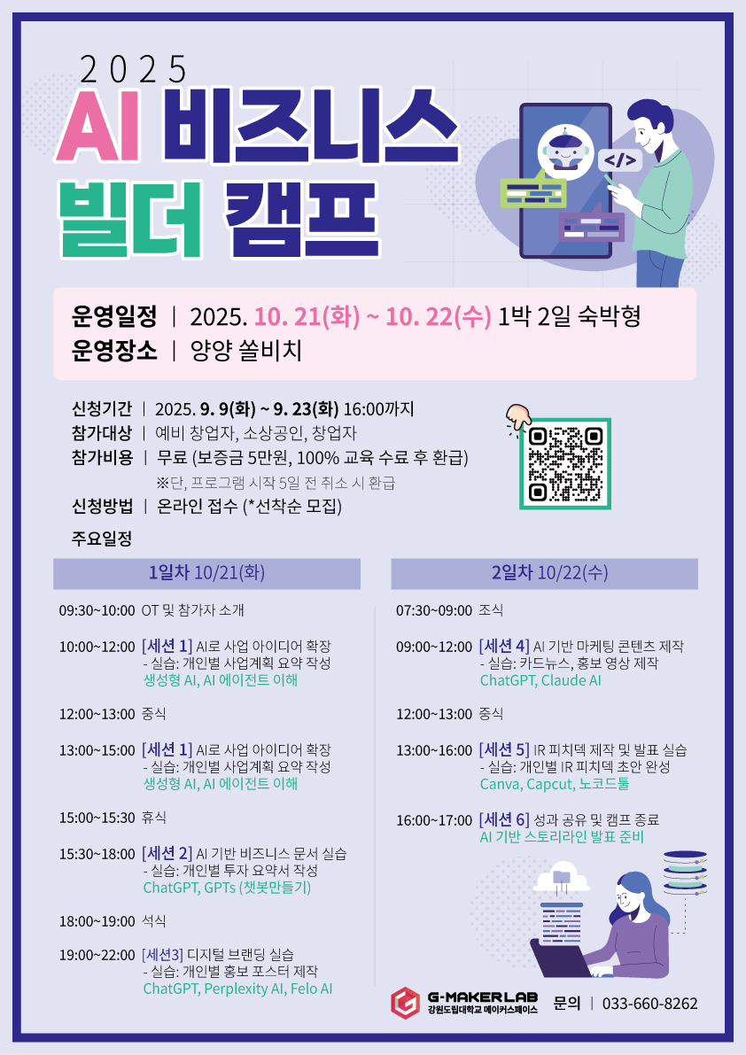 [강원도립대] 2025년도 강원도립대학교 AI 비즈니스 빌더 캠프 참가 안내