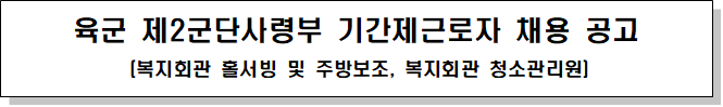 [육군 제2군단사령부] 기간제근로자(복지회관 식당종업원, 청소관리원)채용공고