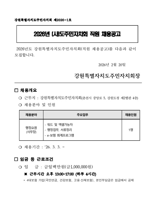 2026년 (사)도주민자치회 직원 채용공고