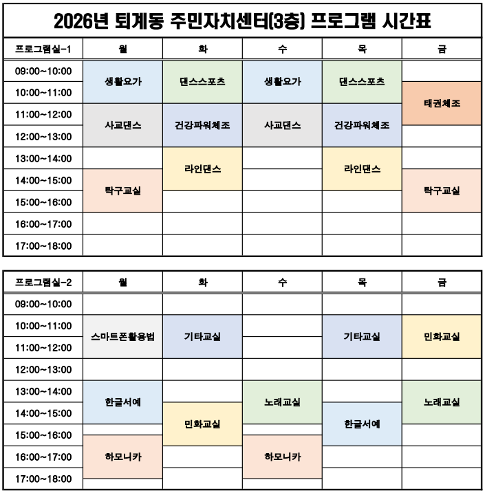 [2026년 퇴계동 주민자치센터 프로그램 운영 안내]