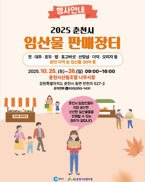 2025 춘천시 임산물 판매장터 10.25(토) ~ 26(일), 2일간