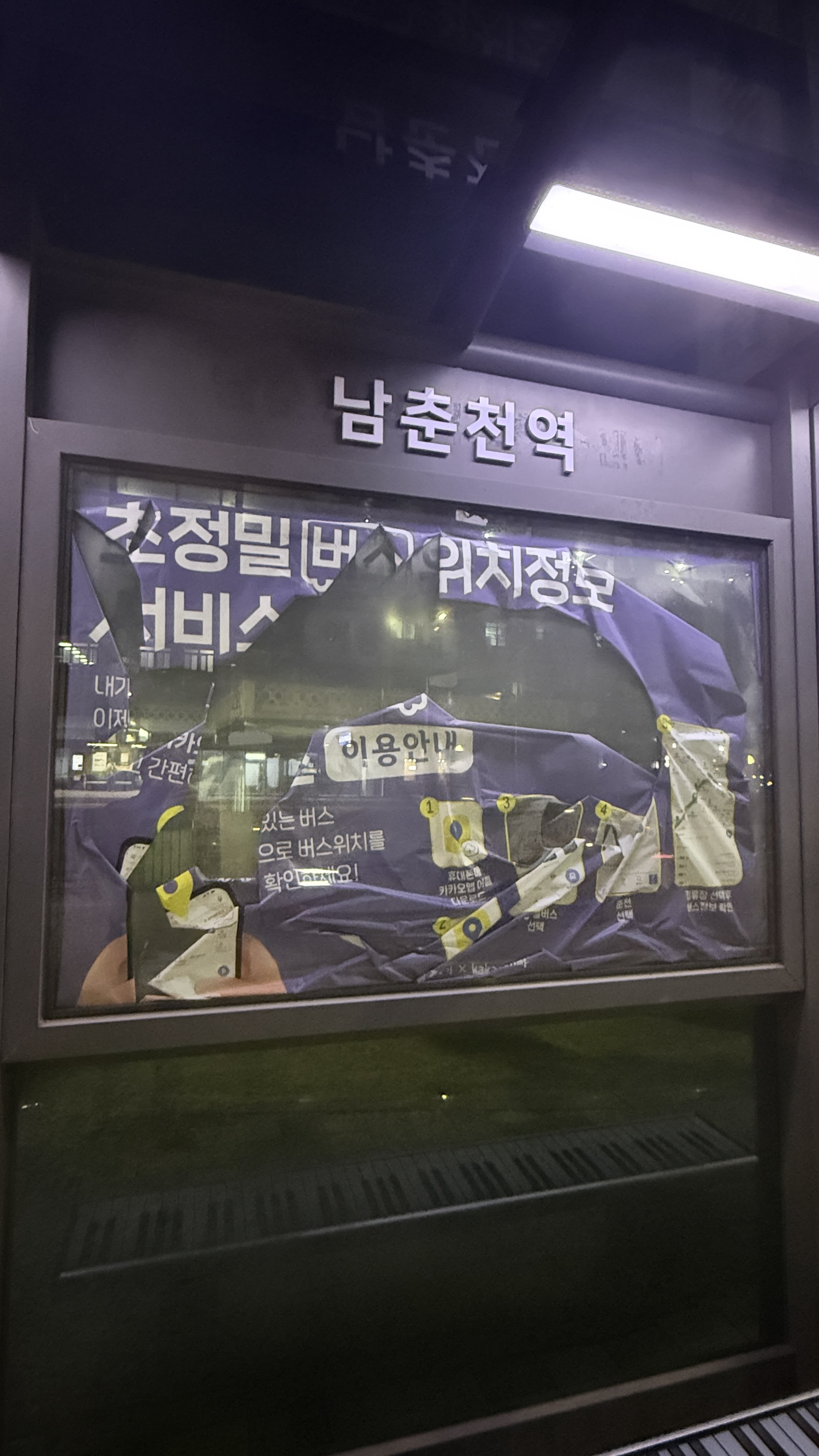 남춘천역 학곡리 방향 시내버스 정류장 안내판 훼손