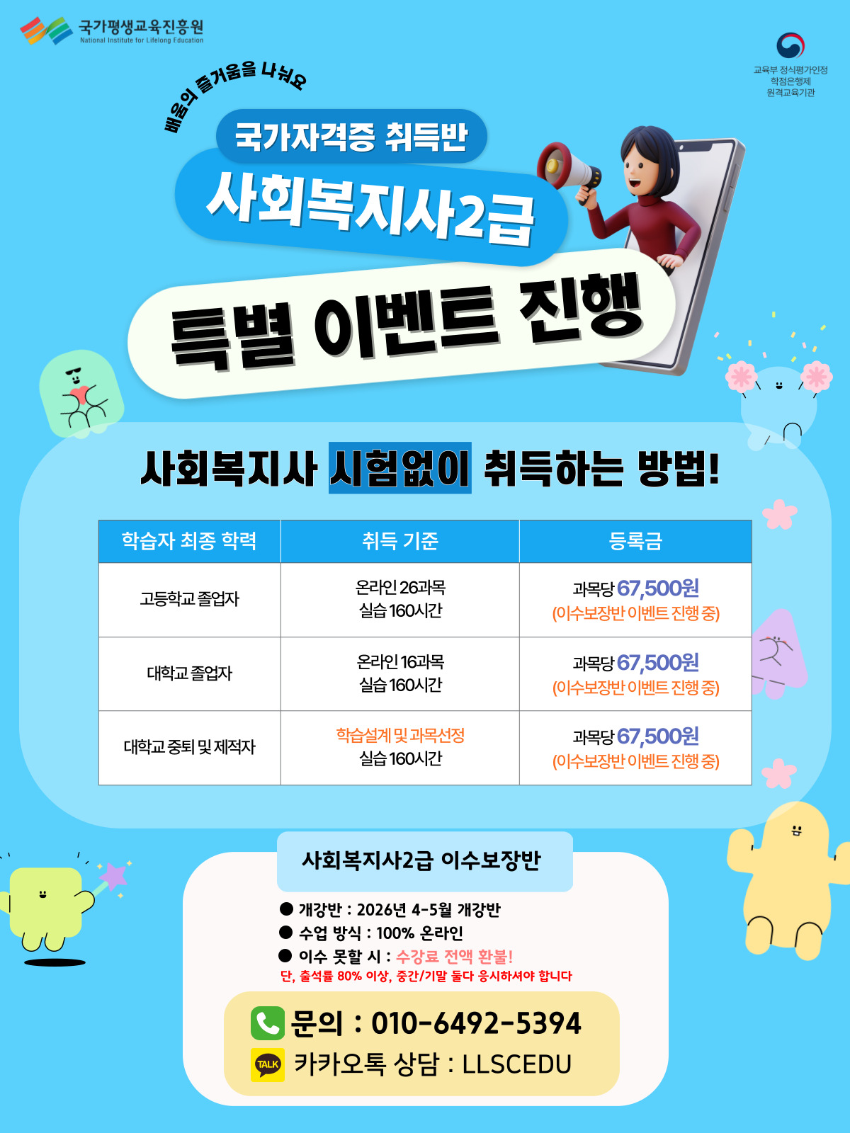 [2026년 1학기] 사회복지사2급 과정 온라인 수강생 등록 안내