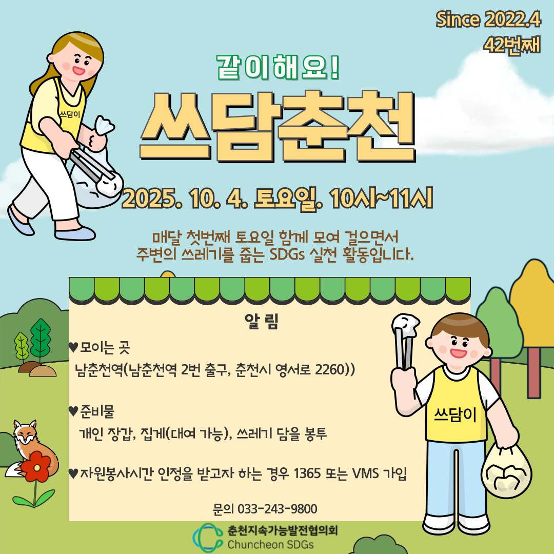 10월 4일 토요일 42번째 쓰담춘천을 진행합니다💚