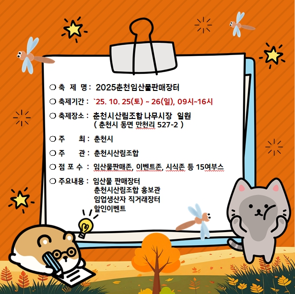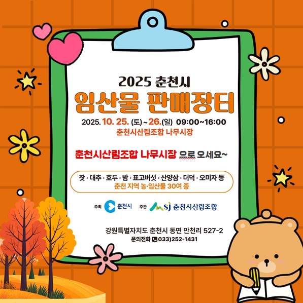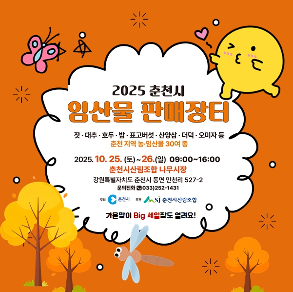 2025 춘천시 임산물 판매장터 10.25(토) ~ 26(일), 2일간