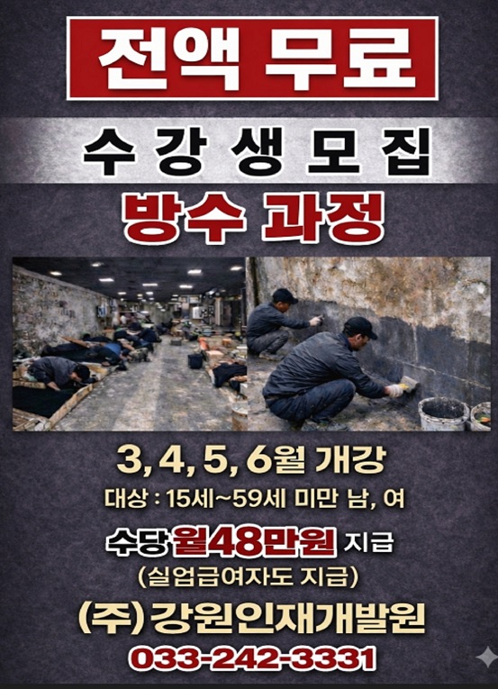 2026년 [국비지원] 방수 자격증 및 실무 ★전액무료★