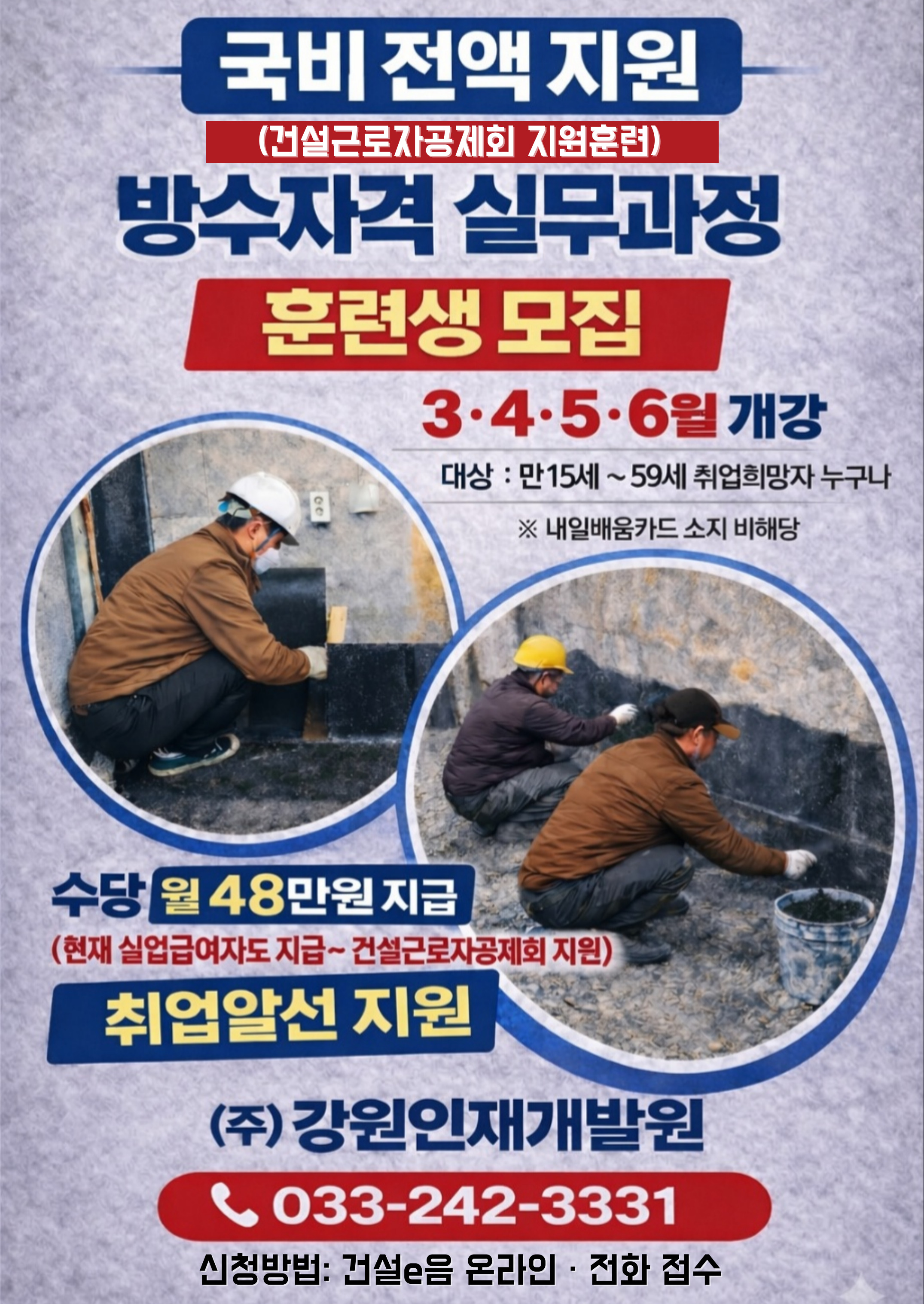 2026년 [국비지원] 방수 자격증 및 실무 ★전액무료★