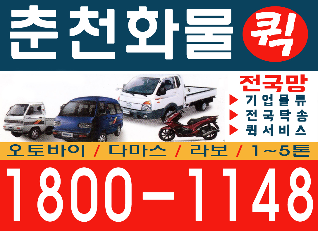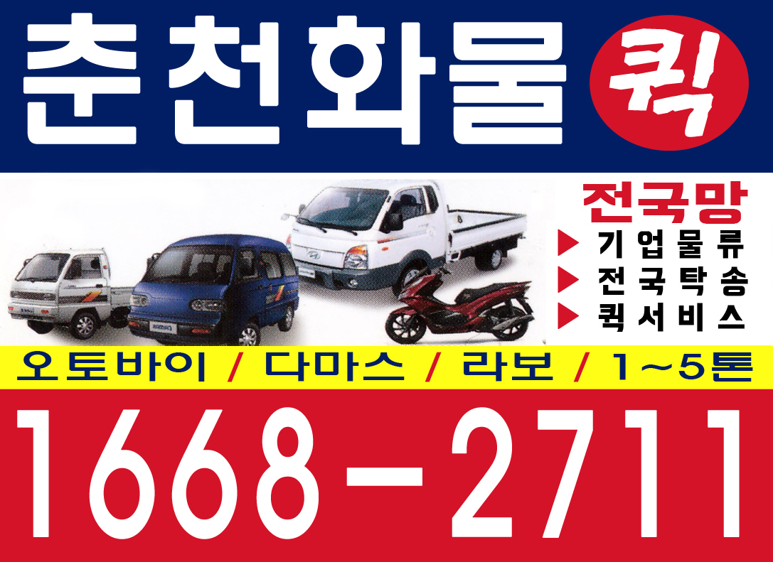 춘천 화물퀵 오토바이/다마스/라보/1~5톤/기업물류/퀵서비스/전국탁송
