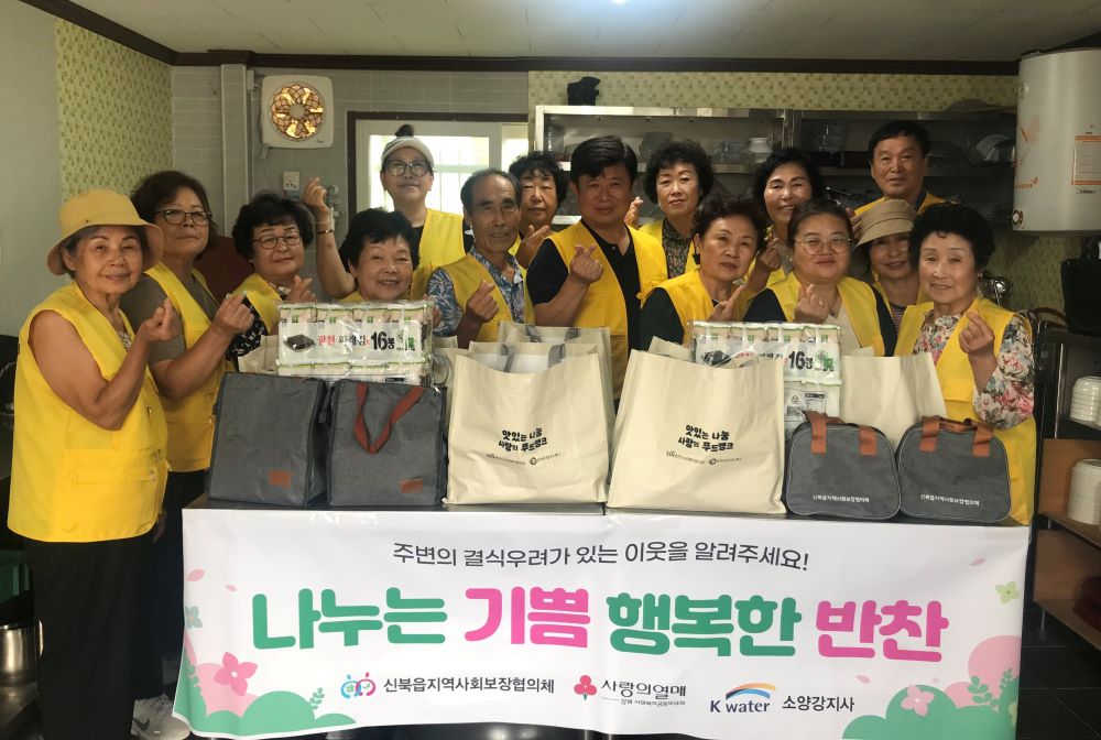 신북읍 지역사회보장협의체(위원장 김신림)는 14일 강원사회복지공동모금회와 K-water 소양강댐지사의 후원을 받아 신북읍 행정복지센터(읍장 김신)에서 독거노인 및 저소득가정 등 41가구를 위한 반찬전달 봉사를 실시했다.