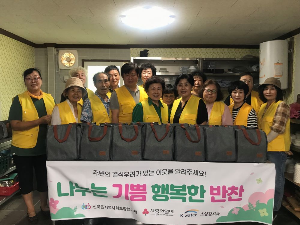 신북읍 지역사회보장협의체(위원장 김신림)는 28일 강원사회복지공동모금회와 K-water 소양강댐지사의 후원을 받아 신북읍 행정복지센터(읍장 김신)에서 윤일숙 육동한 춘천시장 부인이 참여한 가운데 직접 만든 반찬을 독거노인 및 저소득가정 등 41가구에 전달했다.