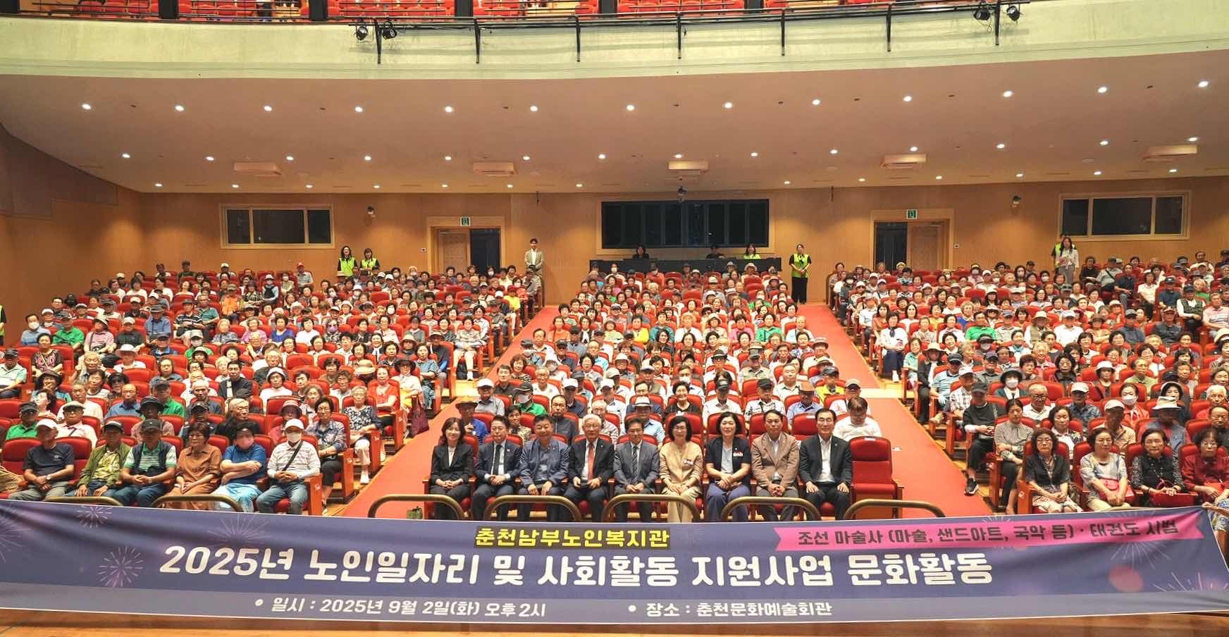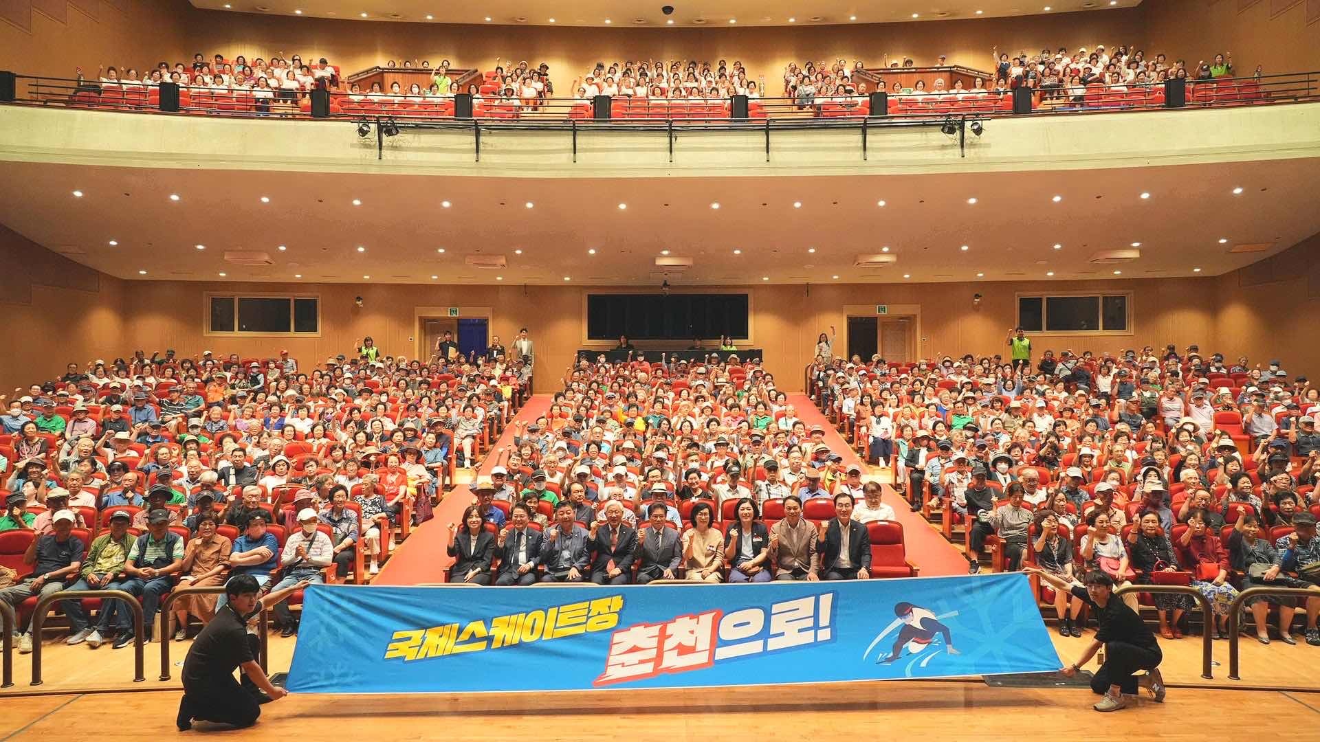 춘천남부노인복지관(관장 김소영)은 2일 춘천문화예술회관에서 노인일자리 참여자 문화활동을 열고 참여 어르신들과 함께 국제스케이트장 춘천 유치를 응원했다. 이 자리에는 육동한 시장도 참석해 어르신들의 활기찬 사회 참여를 응원하며 국제스케이트장 춘천 유치 염원 퍼포먼스에 함께했다.