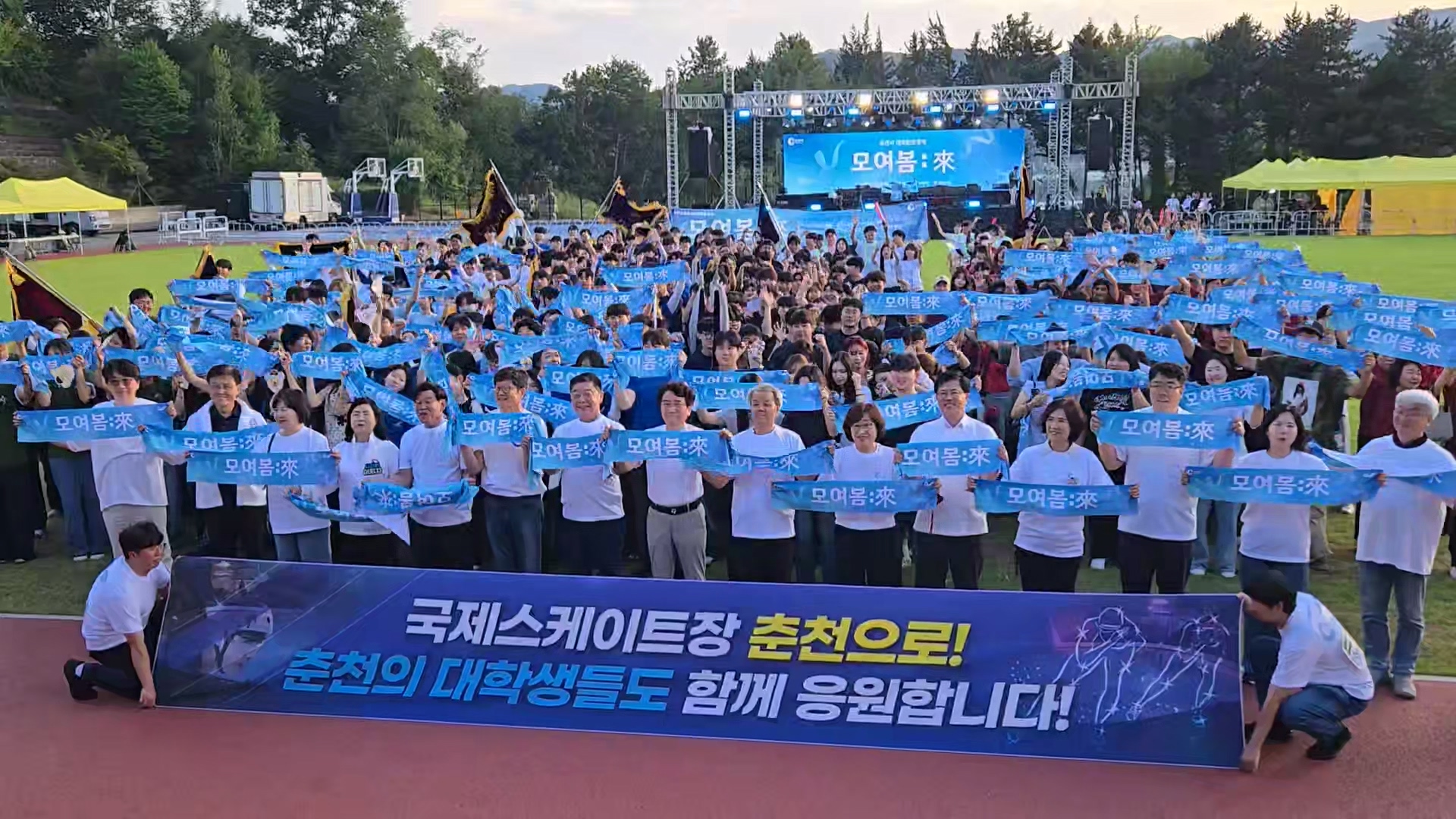 춘천 대학연합축제서 국제스케이트장 유치 응원 펼쳐