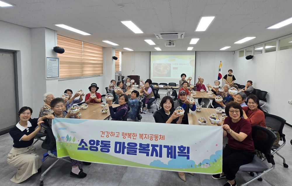 소양동마을복지계획단(단장 김영숙)은 15일 소양동 행정복지센터에서 동네 독거 어르신 20명을 모시고 사회적 고립을 예방하기 위한 ‘나만의 힐링 케이크 만들기’ 제빵교실을 운영했다.