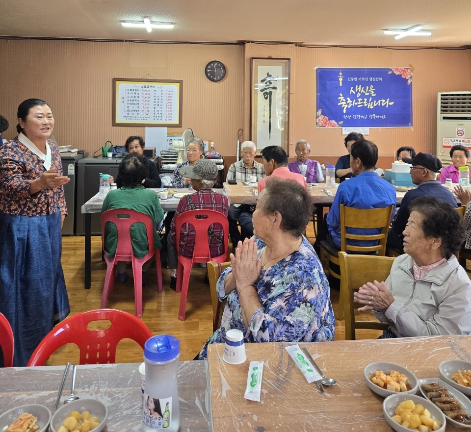신동면을 사랑하는 모임(회장 김재익)에서는 23일 어르신에 대한 존경과 감사의 마음을 담아 7~8월 생신을 맞이한 동네 어르신 21명을 초청해 축하 공연(경기민요 서금옥)과 식사를 대접하는 등 생신잔치를 열었다.