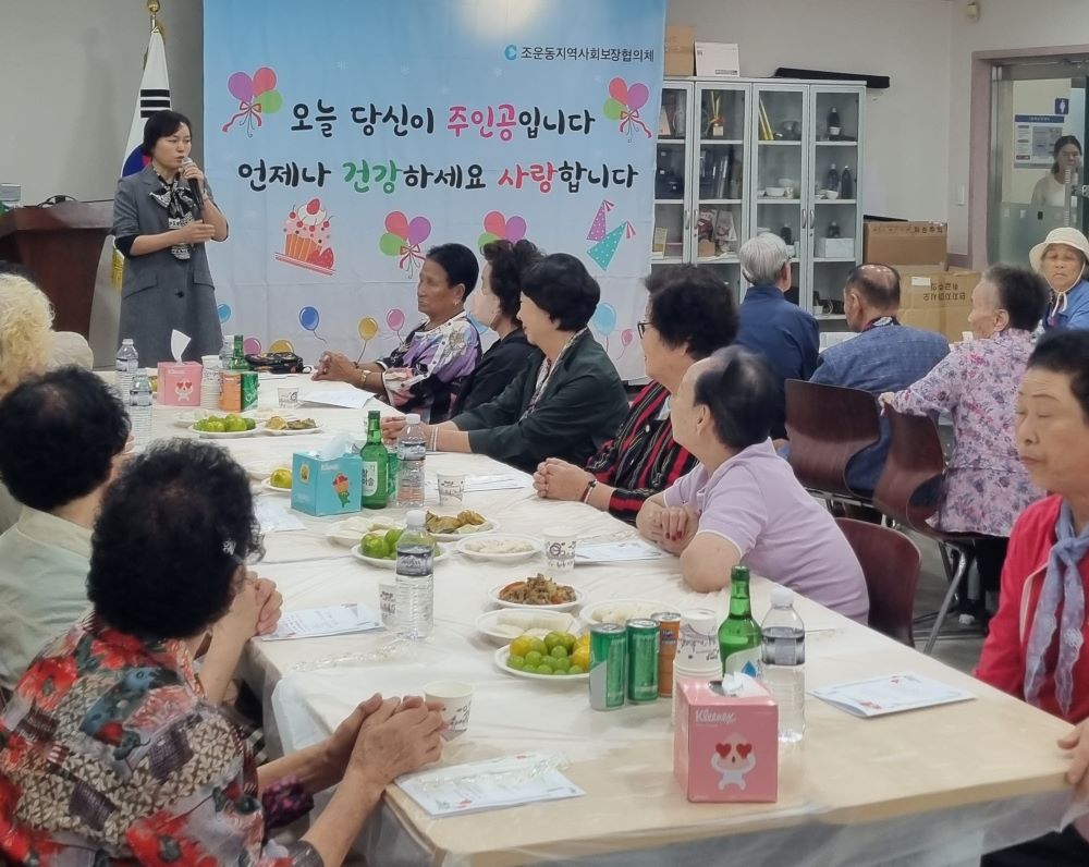 조운동 지역사회보장협의체(단장 한범순)는 24일 하반기 생신을 맞이하는 70세 이상 홀몸어르신 20명을 초대해 생신상을 차려드리고 만수무강을 기원하는 ‘홀몸어르신 생신상 차려드리기’ 사업을 시행했다.