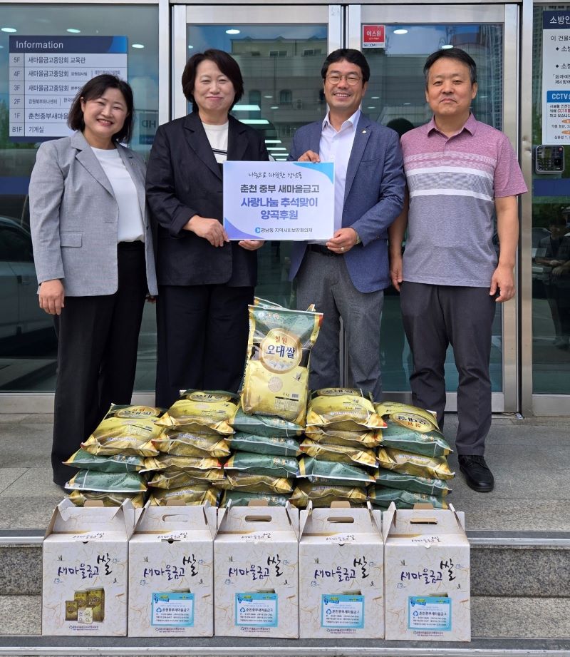 춘천중부새마을금고(이사장 이계영)는 25일 추석명절을 맞아 저소득층을 위한 양곡 4kg 30포(60만 원 상당)를 강남동지역사회보장협의체에 전달했다.