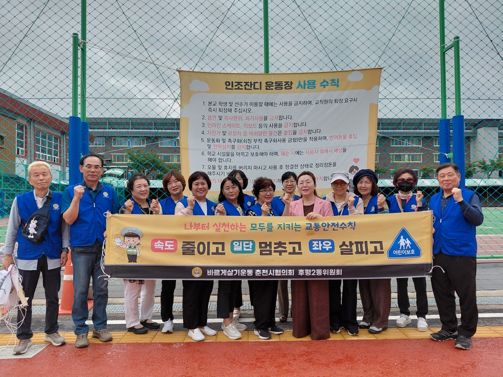 춘천시청이(가) 창작한 후평2동 바르게살기, 어린이 교통안전 캠페인 저작물은 공공누리 "출처표시+상업적 이용금지+변경금지" 조건에 따라 이용할 수 있습니다.