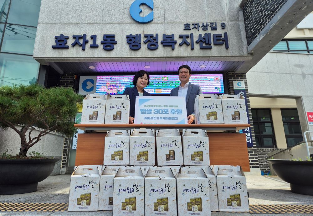 MG춘천중부새마을금고(이사장 이계영)는 추석을 앞두고 25일 효자1동행정복지센터(동장 함지연)를 방문해 동네 저소득 및 홀몸 어르신을 위한 햅쌀 4kg 30포를 전달했다.