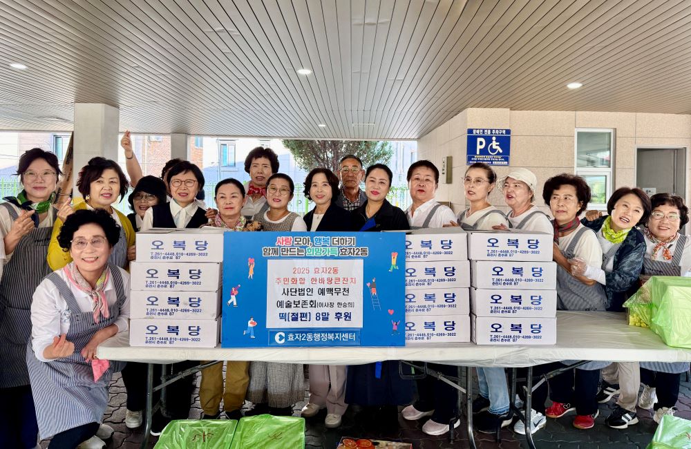 춘천예맥무천 예술보존회(이사장 한승희)는 지난 27일 효자2동 주민화합 한바탕 큰잔치에 떡 16상자를 후원했다.