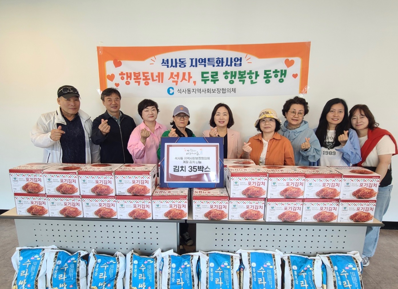 석사동지역사회보장협의체(위원장 최형화)는 지난 29일 지역특화사업 ‘계절김치나눔단‘을 진행하며 동네 취약계층에 김치 3kg(35가구)와 양곡10kg(25가구)을 전달했다.