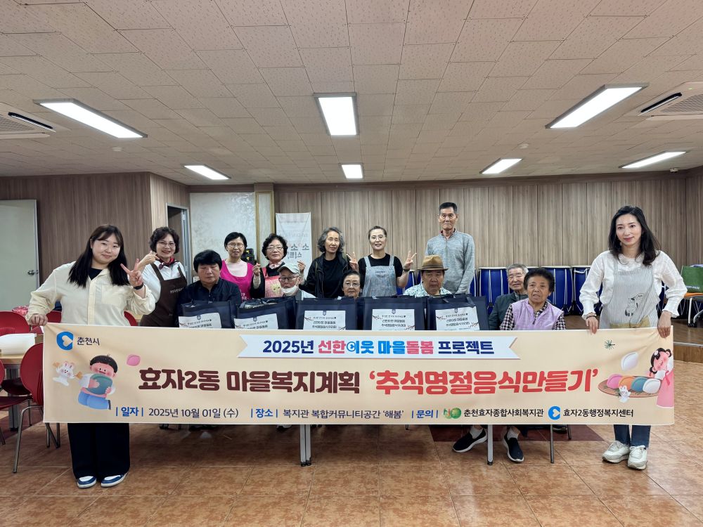 효자2동(동장 유미숙)과 춘천효자종합사회복지관(관장 변영혜)은 지난 1일 지역 내 홀로 사는 주민들과 모여 추석 명절 음식을 만들었다. 이 행사는 선한 이웃 마을돌봄 프로젝트의 일환으로 민‧관이 함께 지역 내 복지문제를 발굴‧해결하고자 추진됐다.
