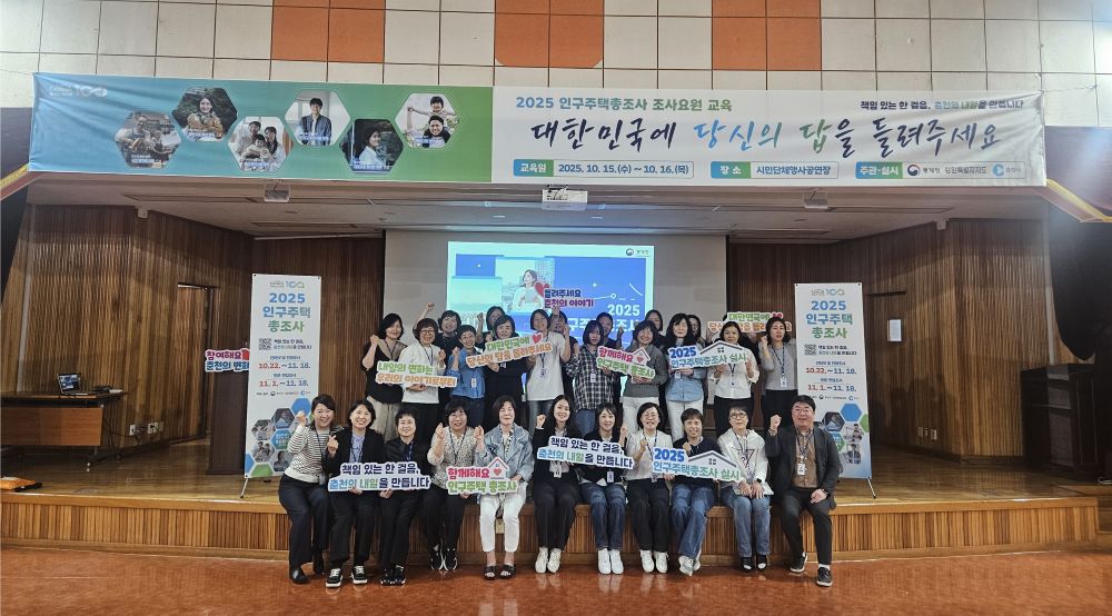 춘천시(시장 육동한)는 지난 15~16일 시청 별관 시민단체공연장에서 ‘2025 인구주택총조사’ 조사요원 교육을 진행했다. 이번 교육에는 통계청의 지침에 따라 선발된 조사관리자와 조사원이 참여했으며 조사방법, 개인정보 보호, 응답자 예절 등 현장조사 전반에 대한 실무 교육이 이뤄졌다.