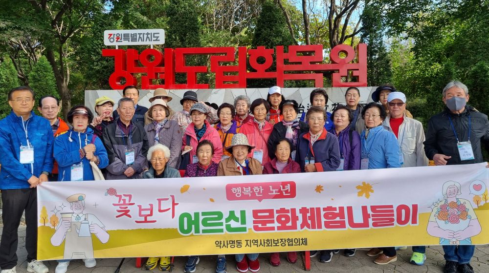 약사명동지역사회보장협의체(위원장 신진태)는 지난 21일 소외계층 독거어르신 20명을 대상으로 자연과 문화를 함께 즐기며 정서적 안정과 일상 속 활력 도모를 위한 마을복지계획사업 ‘어르신 문화체험나들이’를 진행했다.