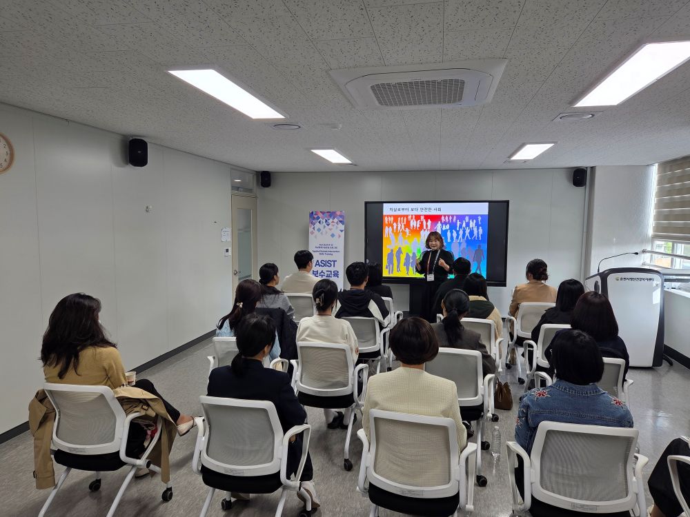 춘천시정신건강복지센터(김미정 센터장)는 24일 자살예방전문가 교육(Applied Suicide Intervention Skills Training‧ASIST)을 이수한 춘천시 공무원 및 보건복지종사자를 대상으로 보수교육을 진행했다.