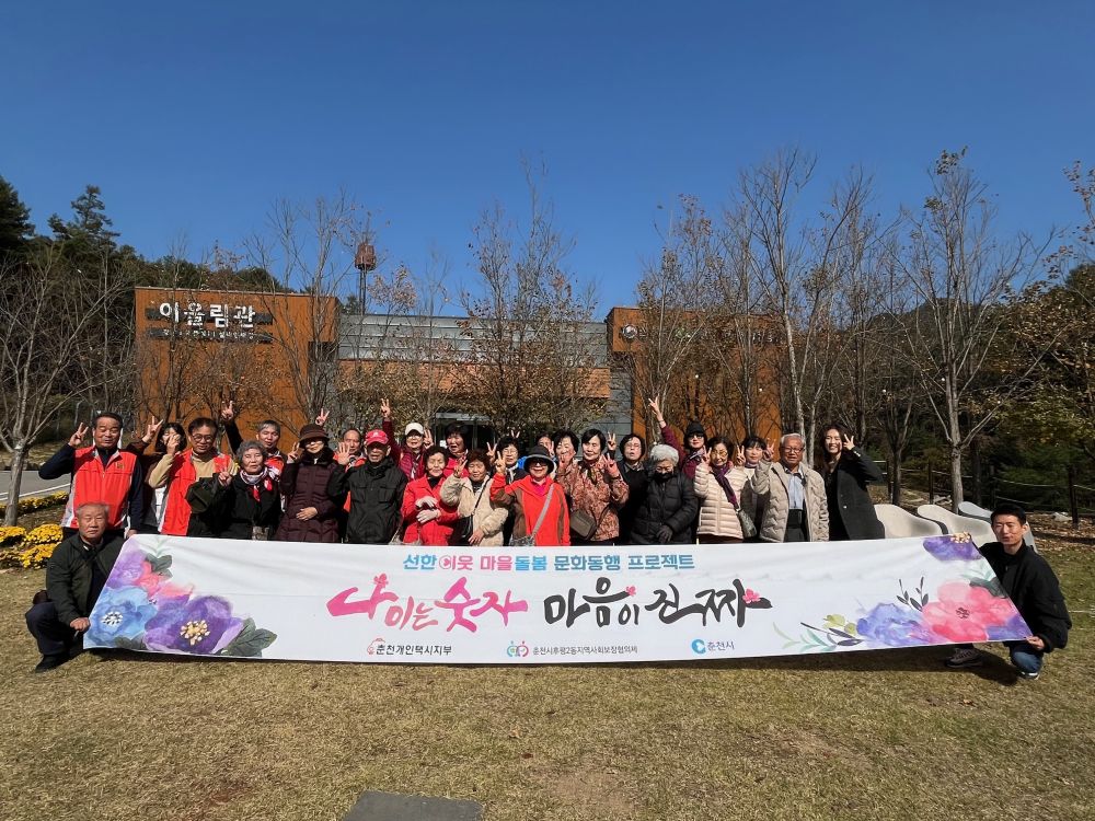 후평2동행정복지센터(동장 마화선)와 후평2동지역사회보장협의체(위원장 박정임)는 29일 바깥 외출이 어려운 동네 홀몸 어르신들을 모시고 국립춘천숲체원 나들이를 다녀왔다. 이번 나들이는 어르신 12명과 지역사회보장협의체 위원들이 1:1 로 매칭해 다녀왔으며 개인택시춘천시지부(지부장 박상원) 봉사단이 어르신들의 이동을 지원했다.