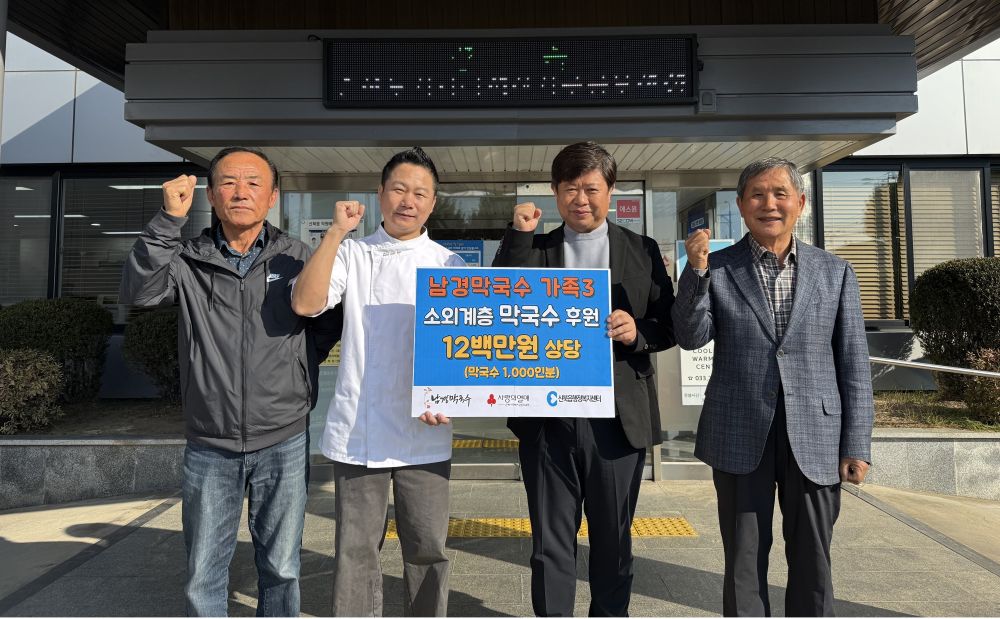 신북읍 소재 남경막국수(대표 최왕규) 가족 일동은 4일 신북읍 행정복지센터(읍장 김신)를 방문해 취약계층을 위해 1,200만 원 상당의 막국수 식권 1,000장을 기탁했다.
