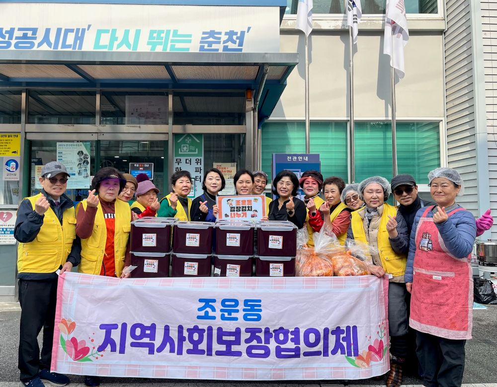 조운동 지역사회보장협의체(민간위원장 한범순)는 지난 6~7일 사랑의 김장나눔 행사를 열고 정성껏 담근 김장김치를 동네 어려운 이웃 21가구와 경로당 3곳에 전달했다. 7일 행사에는 윤일숙 육동한 시장 배우자와 정현자 허영 국회의원 배우자가 함께 봉사에 참여했다.