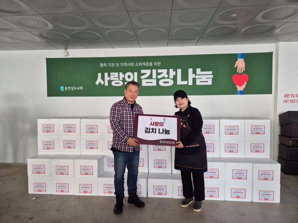 효자1동 춘천성도교회(담임목사 이정화)는 13일 취약층 및 어르신 50가구에 직접 만든 김장 김치를 전달했다.