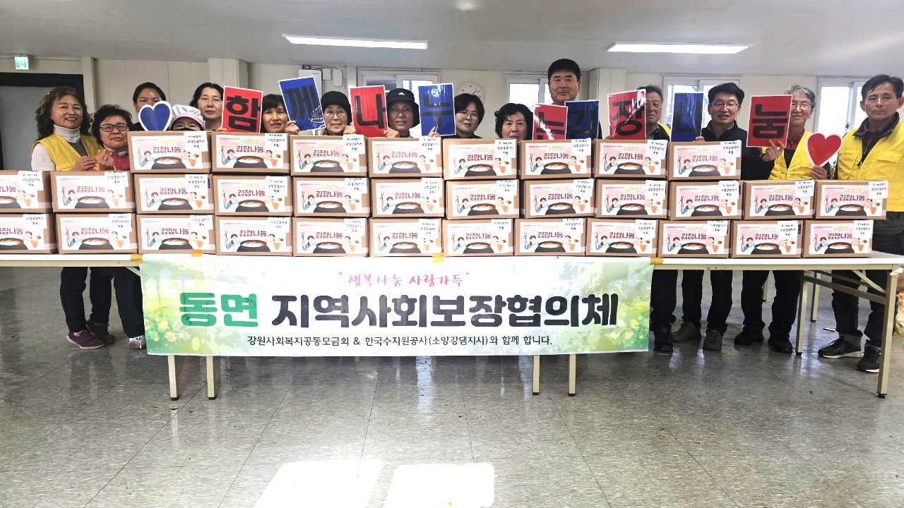 동면 지역사회보장협의체(위원장 변옥철)는 13일 강원사회복지공동모금회와 K-water 소양강댐지사의 후원으로 취약계층 80가구에 직접 조리한 김장 김치를 전달했다.