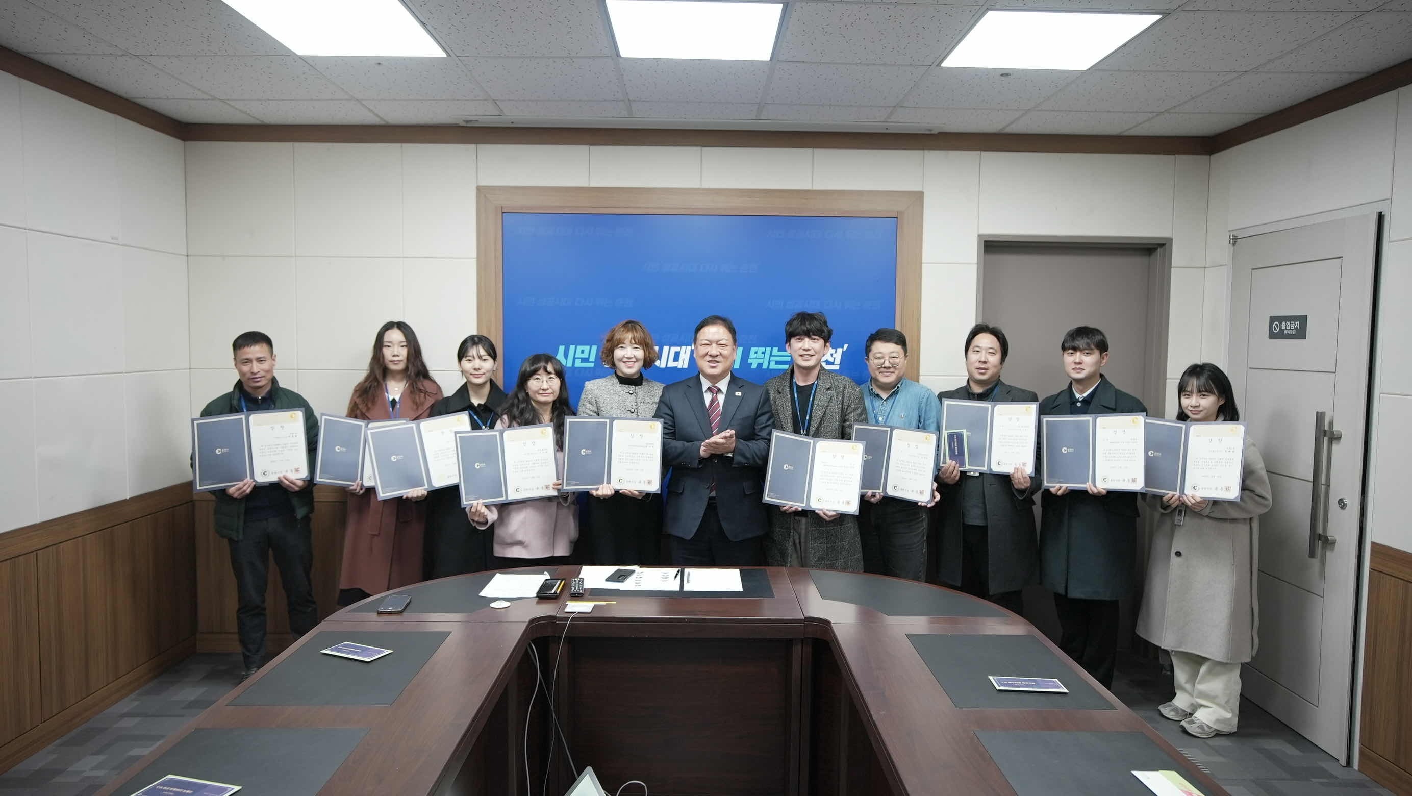 춘천시(시장 육동한)가 10일 시시어 화상회의실에서 청렴시책 우수부서 시상식을 개최했다. 수상 분야는 청춘숏폼 콘테스트 우수(4명), 자율적 내부통제 우수(6명)다.
