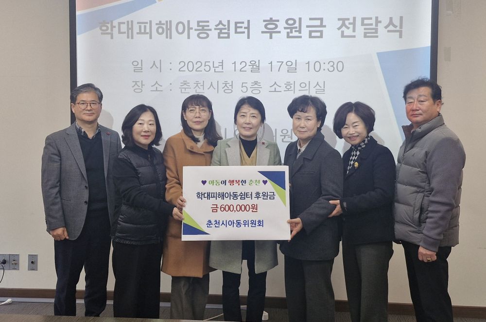춘천시 아동위원회(위원장 김순종)는 17일 지역의 학대피해아동쉼터 2곳에 후원금 60만원을 전달했다.