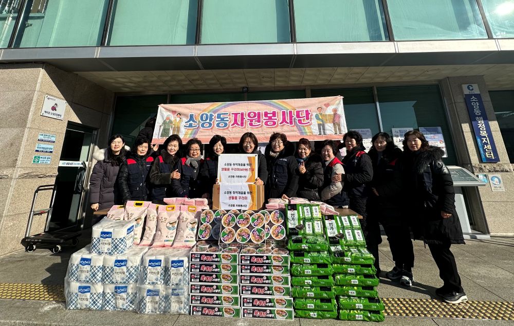 소양동 자원봉사단(회장 이관선)은 26일 소양동 행정복지센터를 통해 독거노인 및 취약계층을 위한 생필품(50만원)을 후원했다. 이번 후원은 춘천시 자원봉사단 단체상 수상 기념으로 마련됐다.