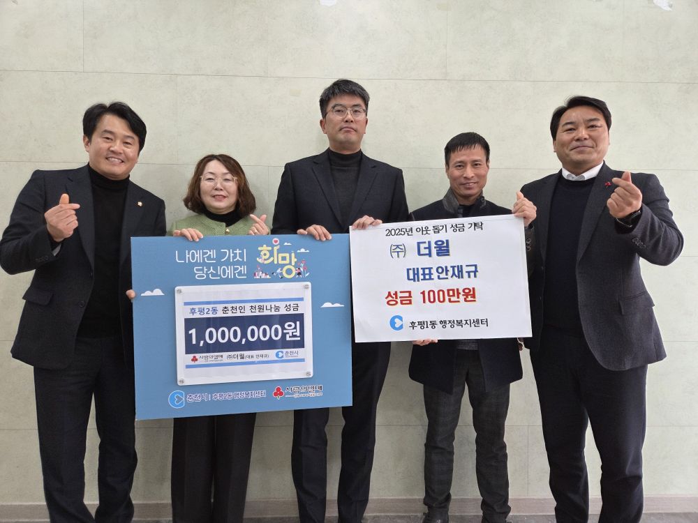 주식회사 더윌(대표 안재규)은 29일 후평1동·후평2동 행정복지센터를 찾아 각각 100만 원씩, 총 200만 원의 이웃돕기 성금을 전달했다.