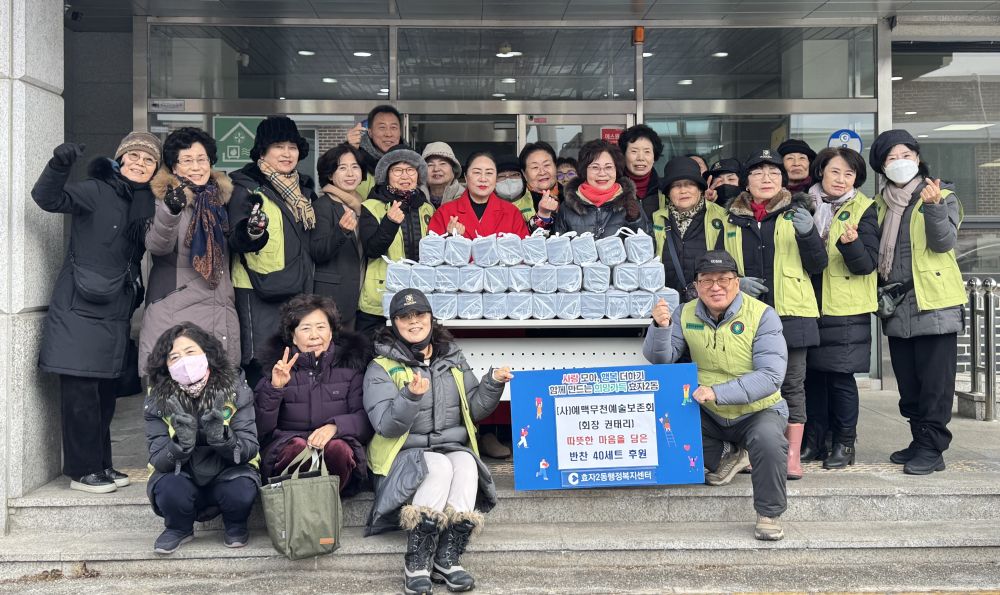 사단법인 예맥무천예술보존회(회장 권태리)는 12일 효자2동 저소득층 주민들을 위해 반찬 3종 40세트를 후원했다.