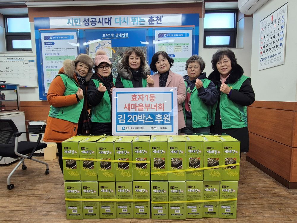 효자1동 새마을부녀회(회장 강순분)는 26일 효자1동행정복지센터에서 동네 취약계층을 위한 김 20박스를 후원했다.