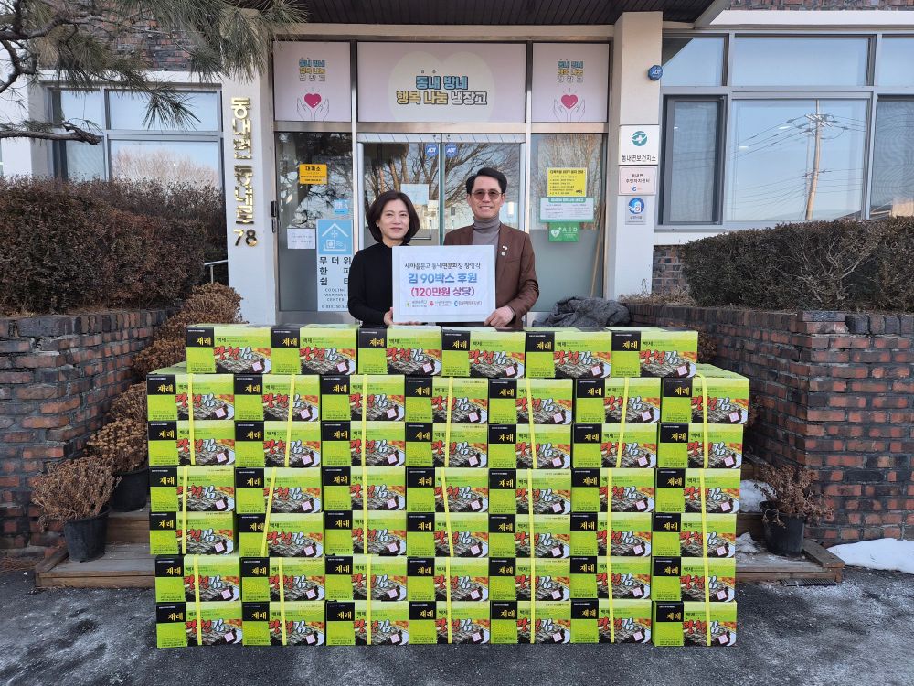 장영각 새마을문고 춘천시지부 동내면분회장은 28일 어려운 이웃에게 전달해 달라며 김 90박스(120만원 상당)를 동내면행정복지센터(면장 최명애)에 기부했다.
