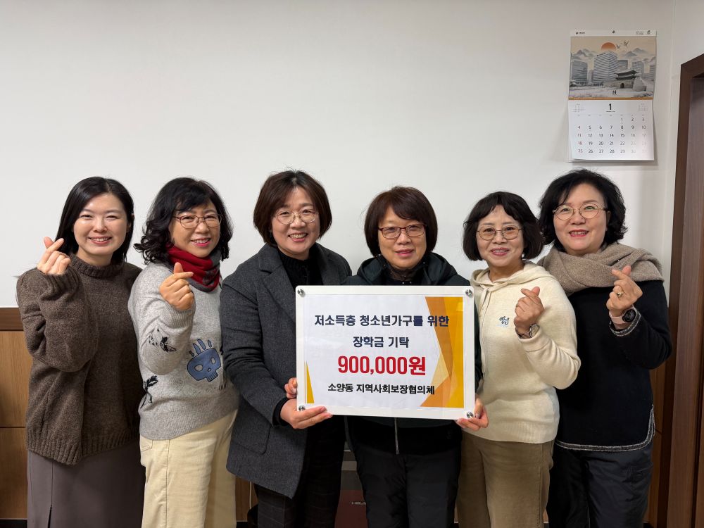 소양동 지역사회보장협의체(회장 김영숙)는 29일 소양동행정복지센터에서 저소득층 청소년 3명에게 장학금 90만 원(1인 30만 원)을 후원했다.