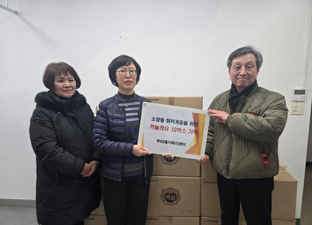 우리재가복지센터(센터장 신윤선)은 5일 소양동행정복지센터를 방문해 동네 홀몸어르신 및 취약계층의 100만원 상당의 카놀라유 80세트를 전달했다.