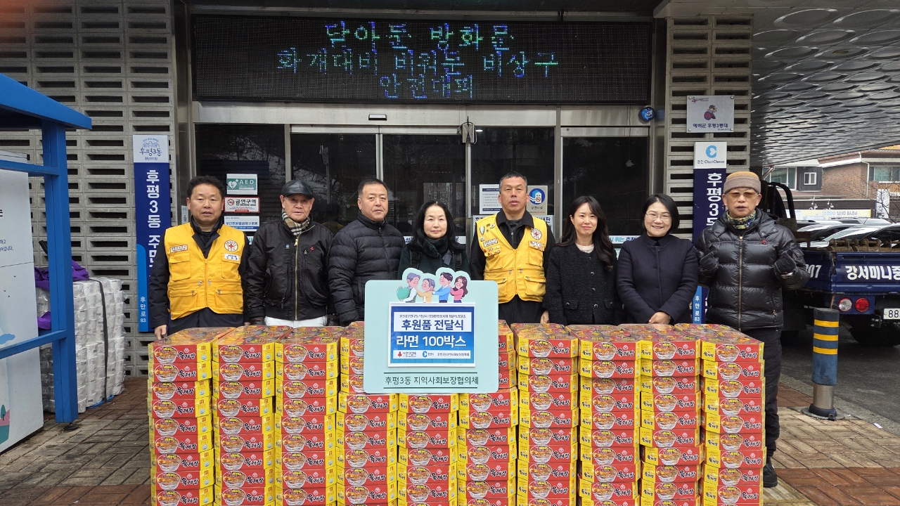 강원헌혈봉사회(회장 최윤석)와 춘천좋은친구들(회장 박상욱)은 5일 후평3동행정복지센터를 방문해 동네 저소득 가구를 위한 라면 100박스를 전달했다.