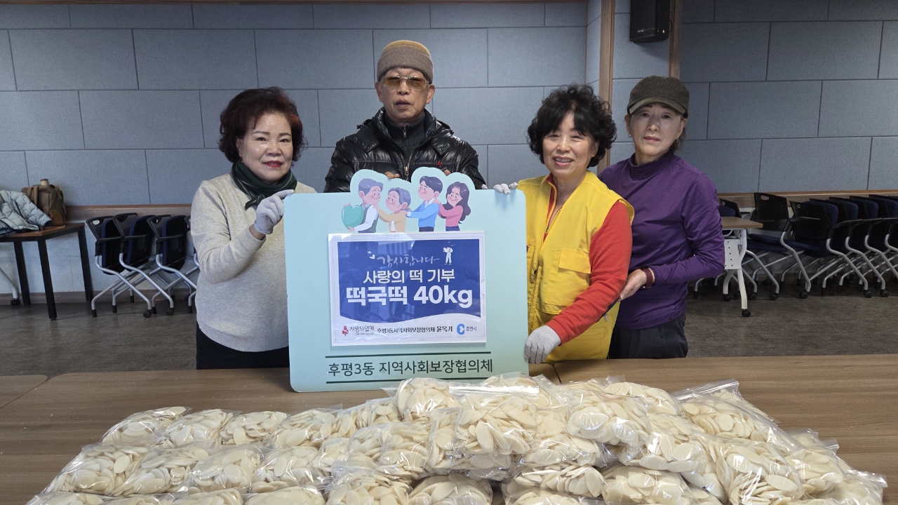 윤옥기 후평3동지역사회보장협의체 총무는 6일 후평3동행정복지센터를 방문해 떡국떡 40kg을 후원했다.