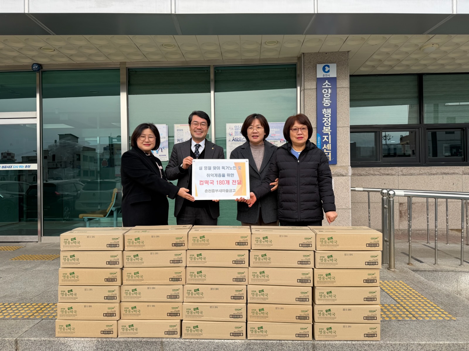 춘천중부새마을금고(이사장 이계영)는 10일 설 명절을 맞아 어려운 이웃을 위한 컵떡국(30박스, 50만원 상당)을 소양동행정복지센터에 전달했다.