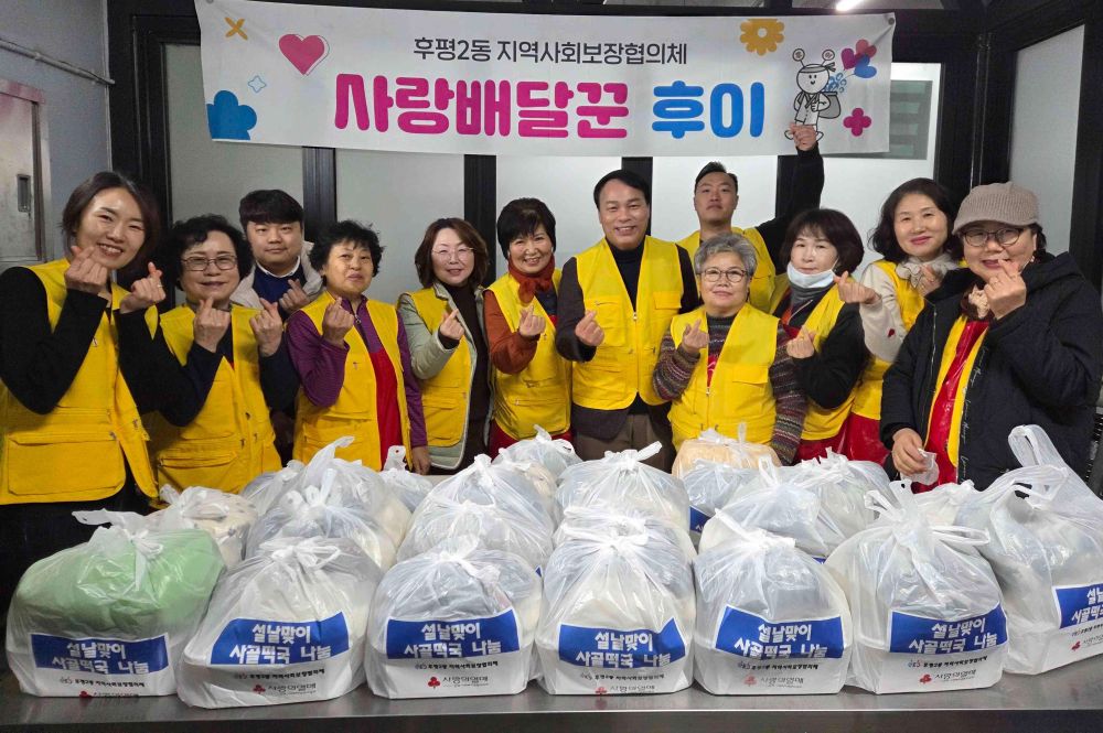 후평2동 지역사회보장협의체(위원장 박정임)는 11일 설 명절을 앞두고 동네 어려운 이웃 25가구를 위해 정성껏 준비한 사골국과 떡국용 떡을전달했다. 이날 김태백축산물에서 사골을, 후평2동지역사회보장협의체에서 떡을 기부했다.
