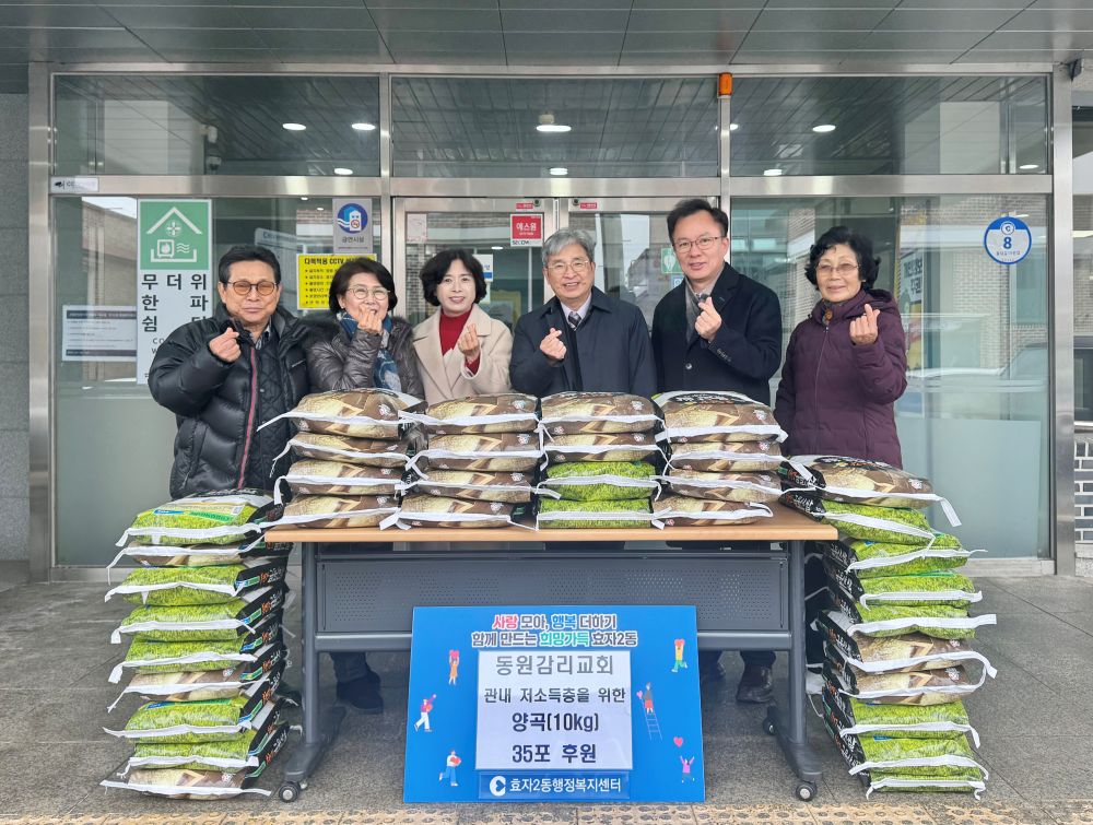 동원감리교회는 11일 저소득 가구를 위한 쌀 35포(350kg)를 효자2동 행정복지센터에 전달했다.