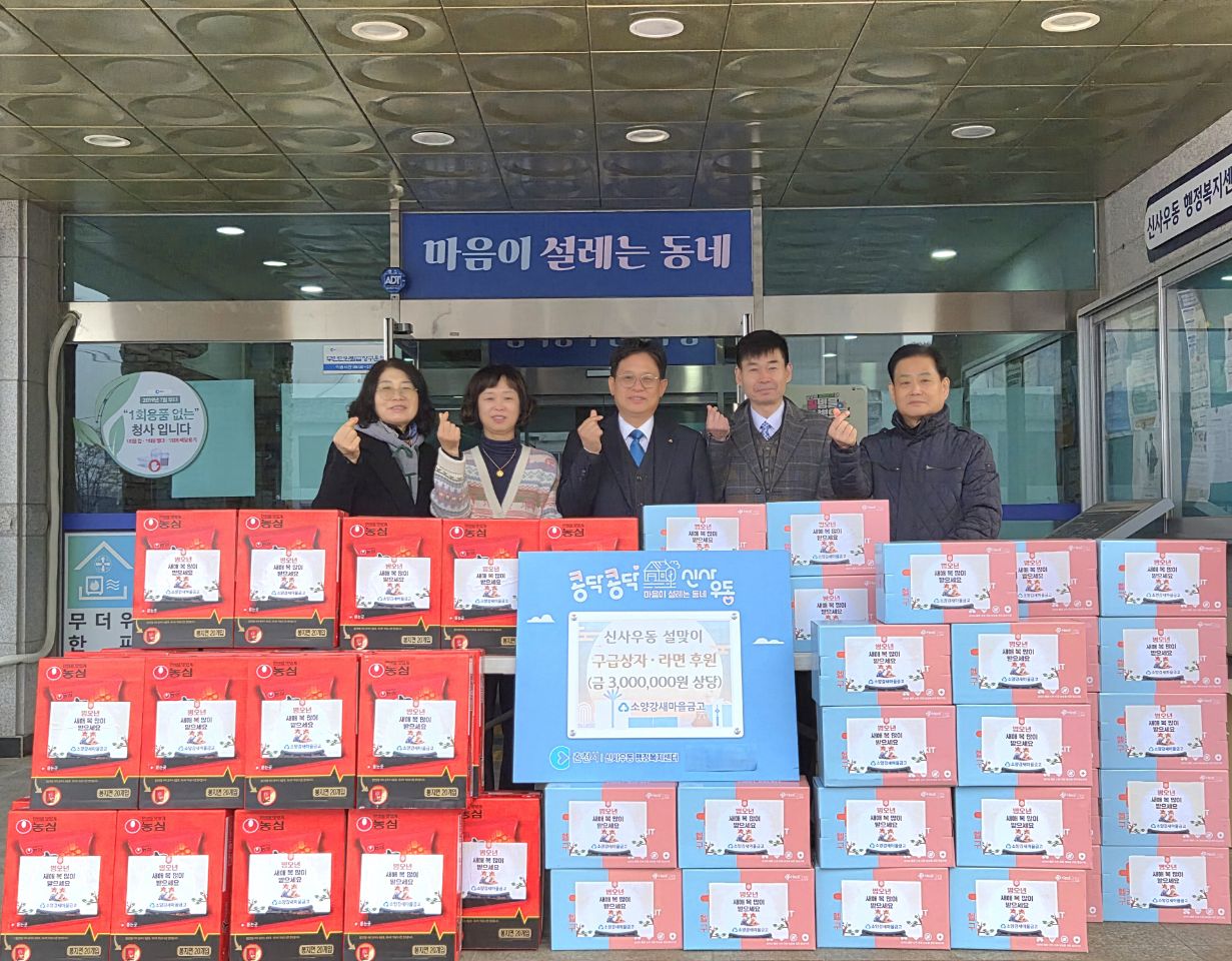 소양강새마을금고(이사장 양봉현)는 13일 설 명절을 맞아 신사우동 행정복지센터(동장 서이원)에 저소득 계층 지원을 위한 300만원 상당의 구급상자와 라면을 전달했다. 이번에 전달된 후원 물품은 지역 내 취약계층 가정에 배부될 예정이다.